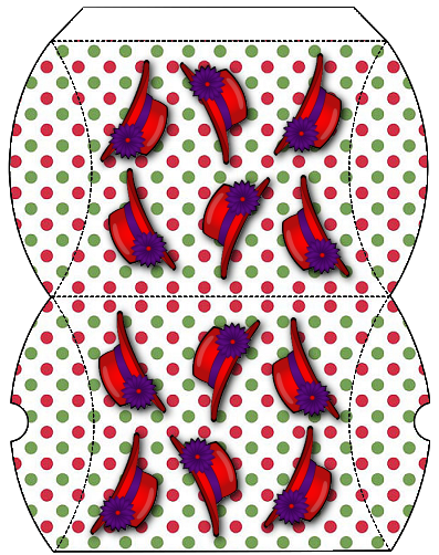 Please note these display images are scaled down, the actual printable pillow boxes are much larger. To download these, right click the image and choose “save link as” (or your browser may call it “save target as”) – or click the image to view the full size gift box and right click that and “save image as”.