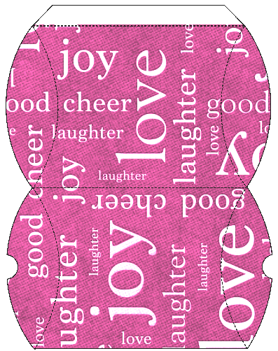 Please note these display images are scaled down, the actual printable pillow boxes are much larger. To download these, right click the image and choose “save link as” (or your browser may call it “save target as”) – or click the image to view the full size gift box and right click that and “save image as”.