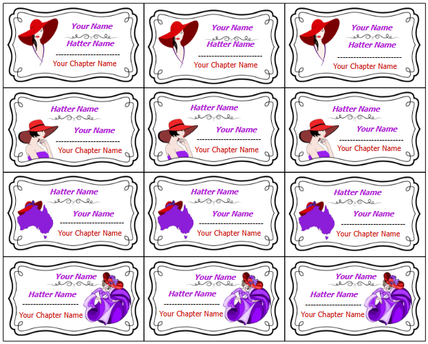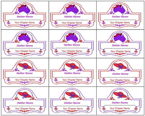 This shape is available with a blank space at the top for your Chapter logo, or with a generic Red or Pink Hatter image.
