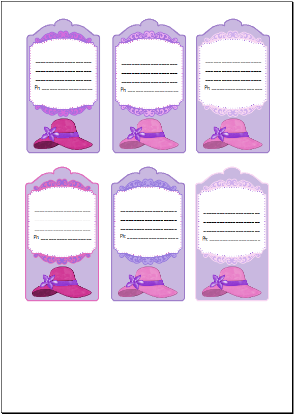 - Word document file with 6 tags, with lines for handwriting your details on after you have printed the page.