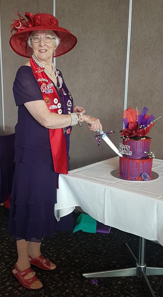 The restaurant at the Growling Frog Golf Club was awash with a sea of purple and red on Wednesday 25th July. In attendance were 60 red hatters in all their glorious finery and glittering jewels to celebrate the 17th birthday of red hatting in Australia.