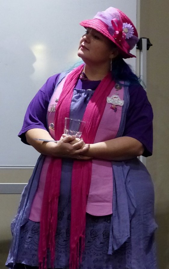 This dress code comes from the “Warning” poem by Jenny Joseph, which talks of wearing “purple with a red hat, which doesn’t go and doesn’t suit me”. This has been used as the motto of sorts for the Red Hat Society. To wear clothing that is bright and colourful (especially if it doesn’t suit you), to be the complete opposite of subtle and demure, to have fun and not to “act your age”. Dressing in the attire of a Hatter is known as wearing your “Colours” and can be considered the equivalent of a uniform.
